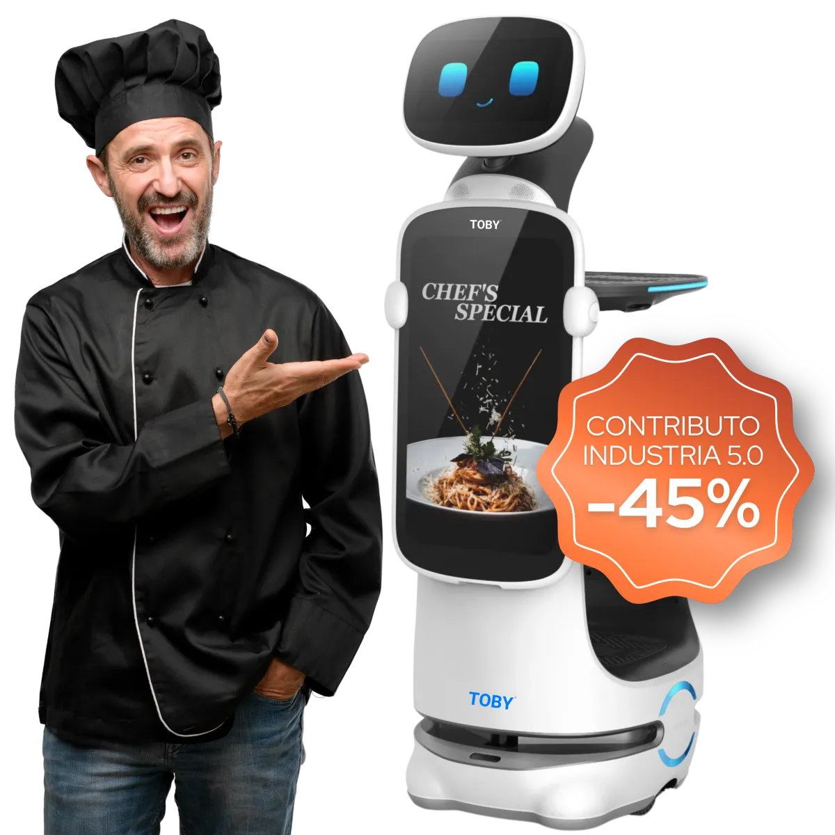 Ho scelto Toby® perchè è una novità assoluta, e mi ha aiutato tantissimo visti i problemi, soprattutto in estate, a trovare personale. Toby® ha davvero migliorato l'efficienza del mio ristorante!